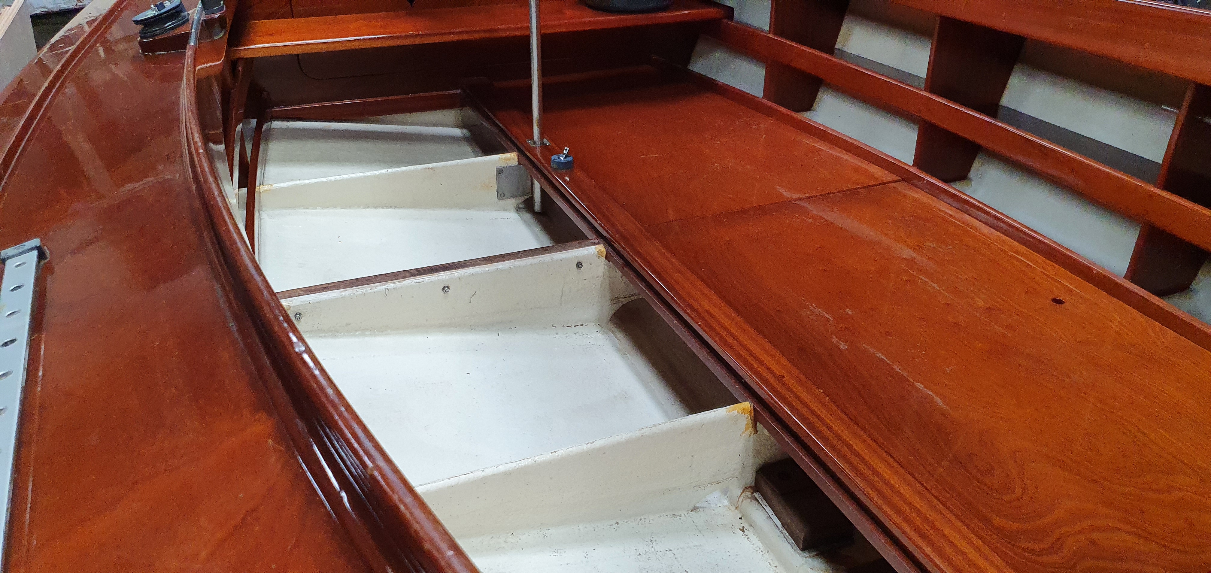 Goed onderhouden valk waarbij dek en binnenzijde hoogglans gelakt zijn